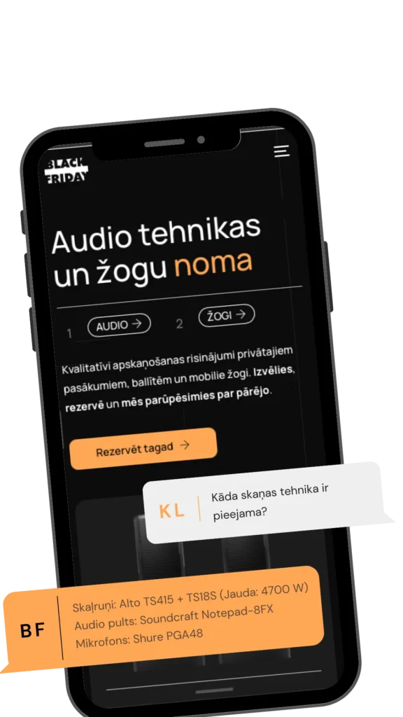 Aizpildi īsu formu vai piezvani – norādi datumu, vietu un vajadzīgo aprīkojumu.